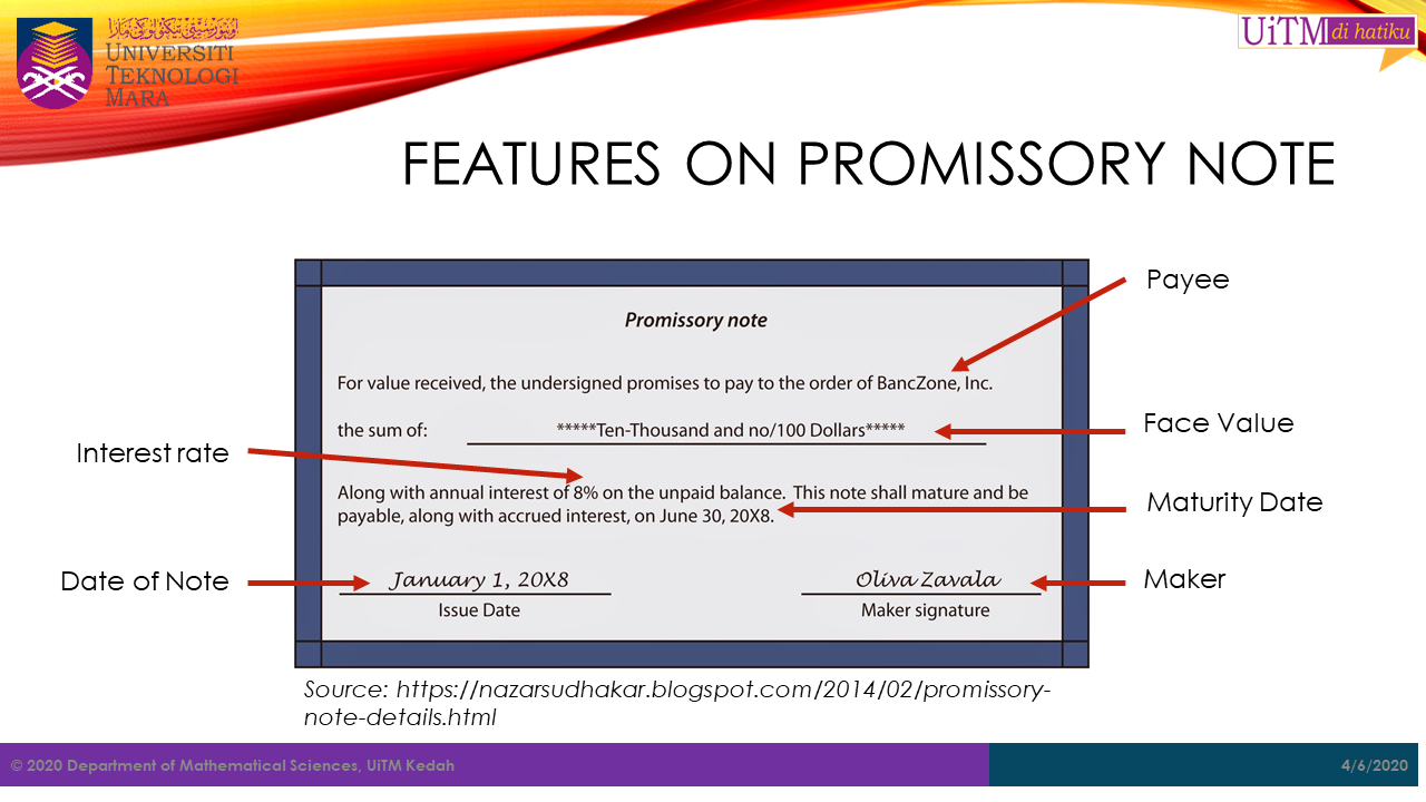Promissory Note: Terms & Calculations. (2015, January 3). Retrieved from https://study.com/academy/lesson/promissory-note-terms-calculations.html.