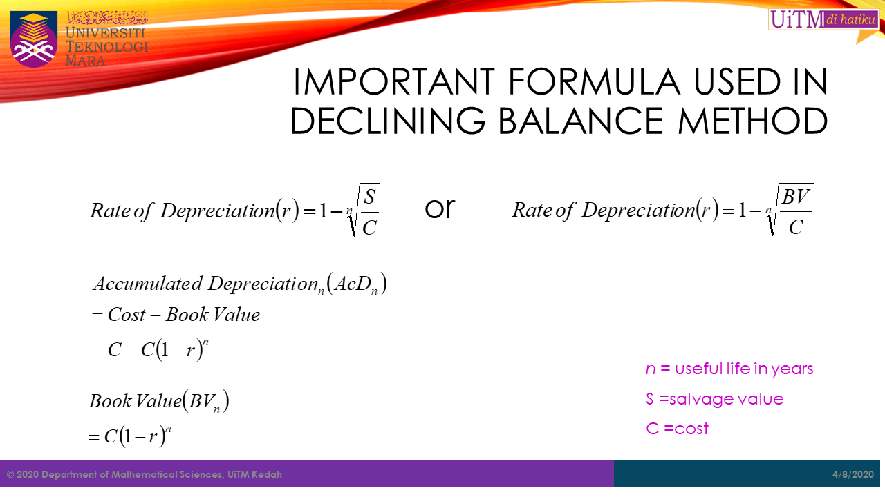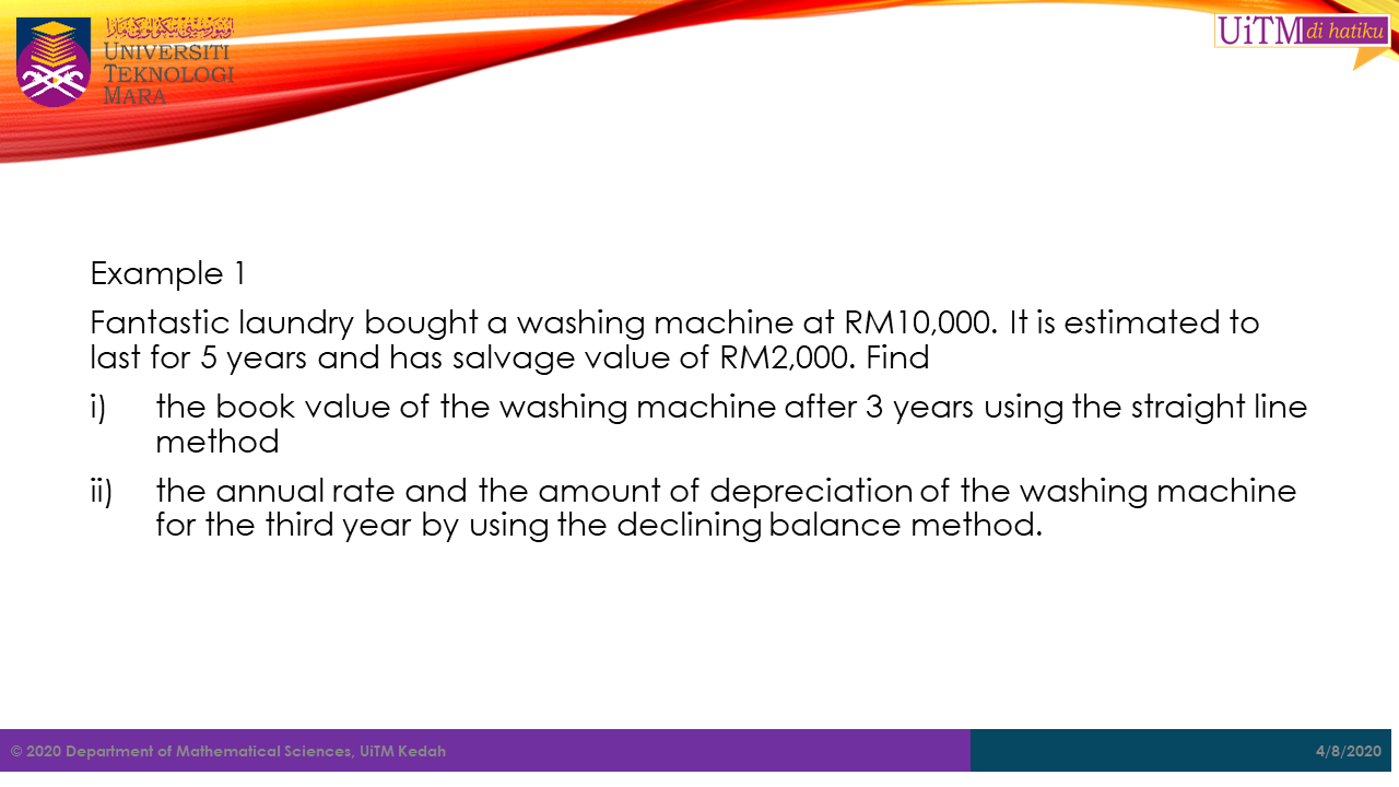 In depreciation there are several methods that can be used. However, in this course, we are only cover two methods which are,