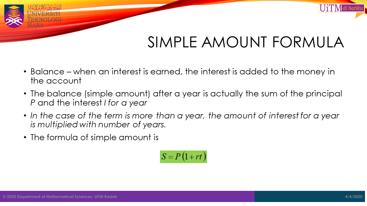 To find the simple amount \(S\), the following formula can be used.